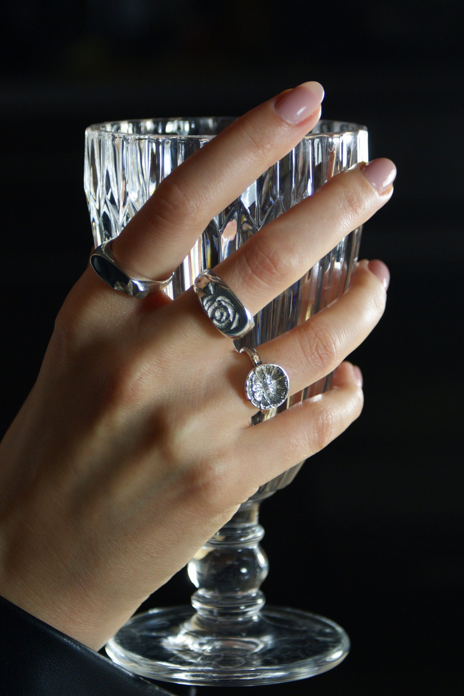 Minimalizm pełen mocy Sygnet Lunaria to propozycja dla kobiet, które szukają biżuterii oszczędnej w formie, ale silnej w wyrazie. Zaprojektowałam go jako harmonijne połączenie surowej rzeźby i gładkich płaszczyzn. To idealny wybór dla miłośniczek minimalistycznego designu, które cenią autorskie rzemiosło marki HerRing i unikatowość ręcznej pracy.